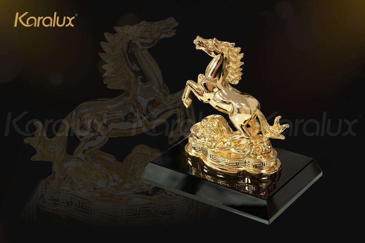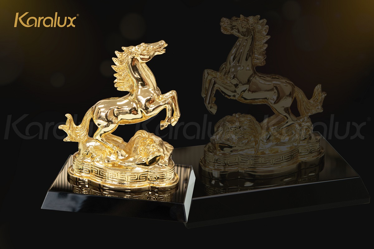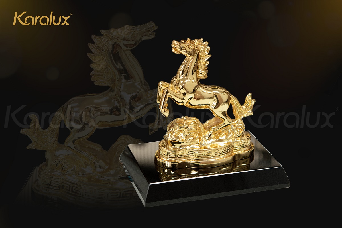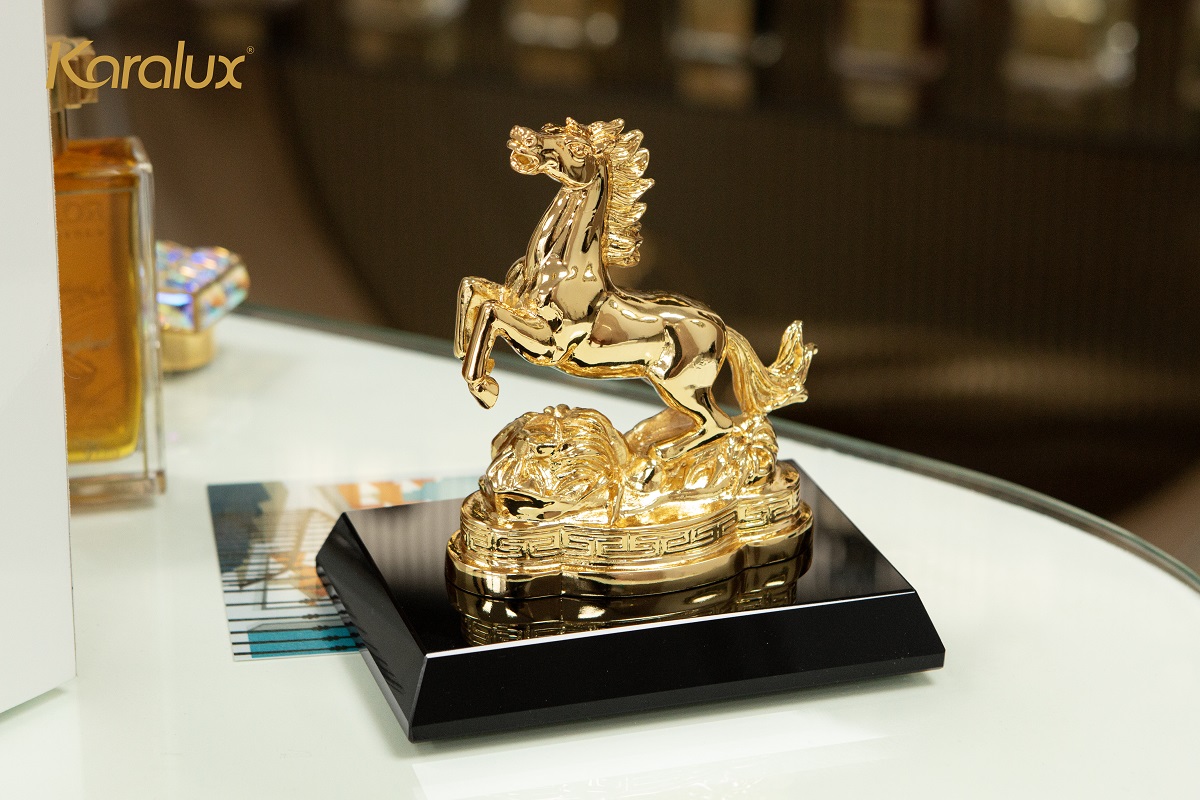 Tượng ngựa mạ vàng có thể đặt trên bàn làm việc, tủ trưng bày phòng làm việc, phòng khách hoặc phòng lễ tân,…